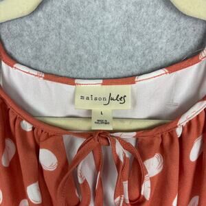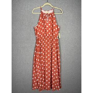 Maison Jules Dress Large Polka Orange Dot Midi Flowy Ruched Halter Tie Beach Vacation Resort Coastal Mediterranean Twee Romantic Feminine Keyhole Sleeveless Elastic Waist Loose Pretty Woman