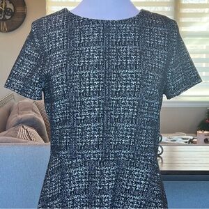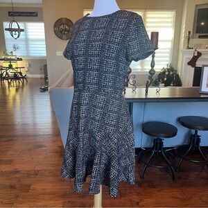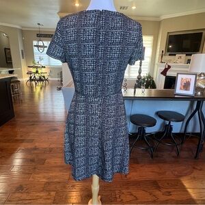 Maison Jules Dress Size Large Black White Print Fit & Flare Short Sleeve