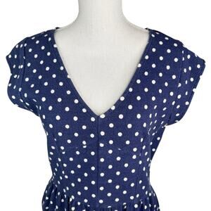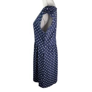 Maison Jules French Terry V-Neck Fit and Flare Dress Polka Dot Navy Blue White L