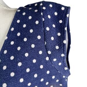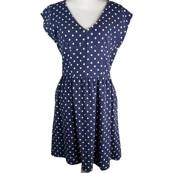 Maison Jules French Terry V-Neck Fit and Flare Dress Polka Dot Navy Blue White L