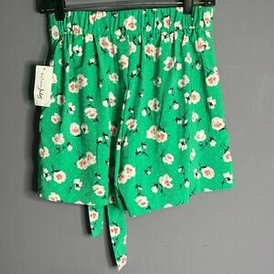 Maison Jules Green and Pink Floral Belted Mid Rise Shorts Size Small