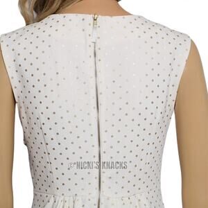 Maison Jules Ivory Gold Polka Dot Fit & Flare Dress Metallic Mini Zip Size S