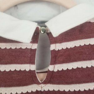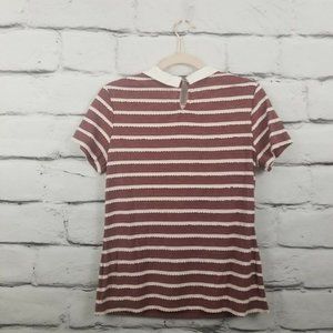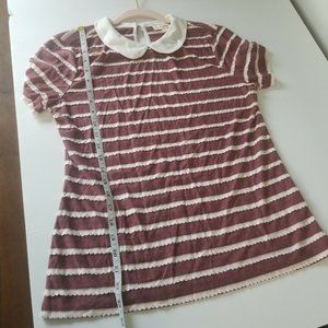 Maison Jules Womens Size Medium Maroon Short Sleeve Striped Pullover Top Collar. Condition is New without tags. Measurements are in the photos. Smoke and pet free home. Bin 21