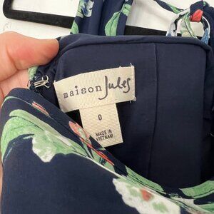 Maison Jules Maxi Dress Navy Floral Halter Neck Ruffle Hem 0 XS