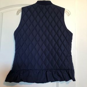Such a cute vest. Size medium (fits between small/medium). Small ruffle bottom makes this very girly. Zip pockets. Soft neck. Great condition.