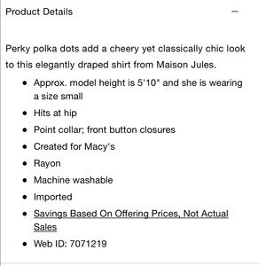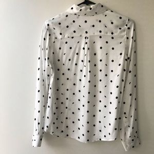 Super cute polka dot, button up, blouse. Size extra small. 100% rayon. Wash cold, air dry. Worn once, but too small for me. Super cute work shirt or tucked into a pair of high waisted pants.