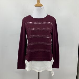 MAISON JULES SHIRT WOMENS S SMALL VINTAGE WINE GENEVA CUTOUT EMBROIDERED TWOFER