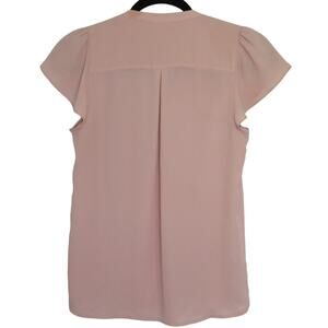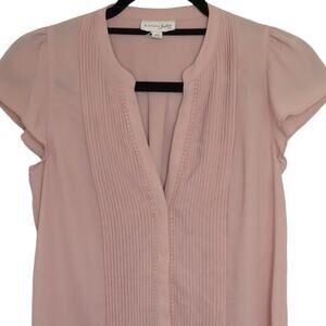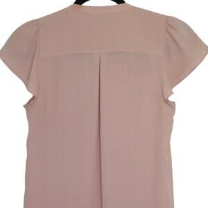 Maison Jules Short Sleeve Top Button Front V-Neck Blouse Pink Size XS