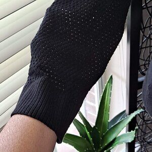 Maison Jules Size Small Black Sweater White Peter Pan Pearl Collar Mesh Sleeves