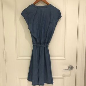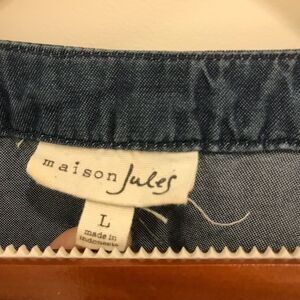 Maison Jules Sz L denim chambray wrap cap sleeve sun dress