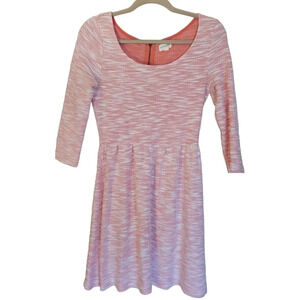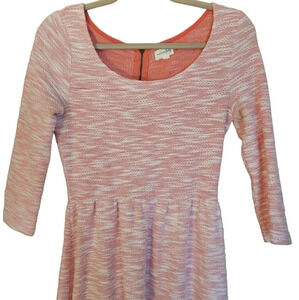 Pretty salmon and white textured knit dress with gathered waist and zipper detail on the back.