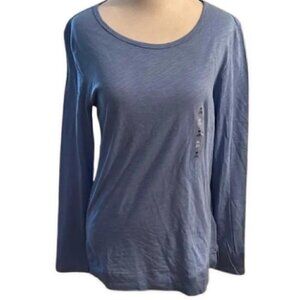 Maison Jules Top Pull Over Long Sleeve Scoop Neck Cotton & Modal Fabric Blue W M