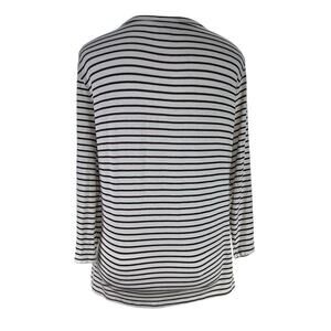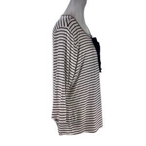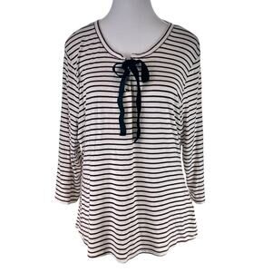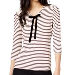 Maison Jules Velvet Tie Neck Striped Tee Shirt Top Burgundy White Size Large
