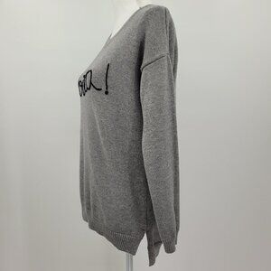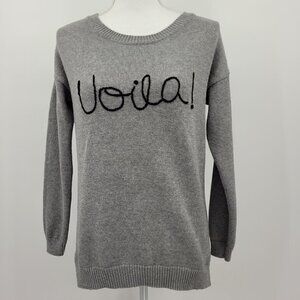 Maison Jules “Voila!” Embroidered Grey Crew Neck Sweater