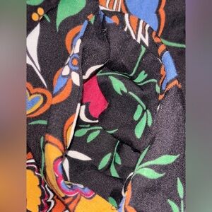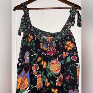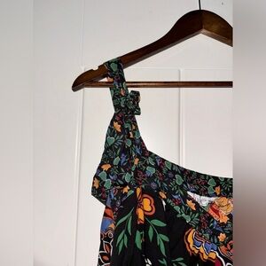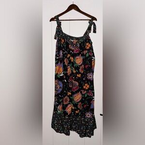 Maison Jules Women Black Floral Spaghetti Strap V Neck Midi Shift Dress Large
