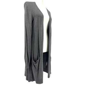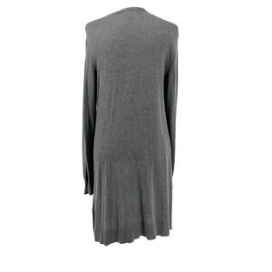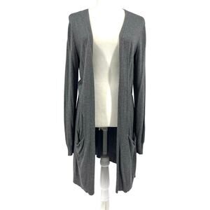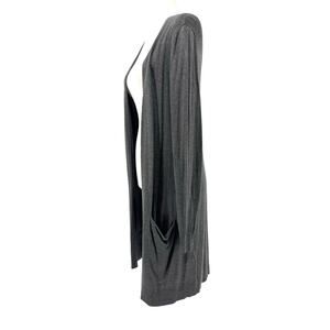 Maison Jules Women's M Linen-Feel Long Gray Knit Open Cardigan Pockets