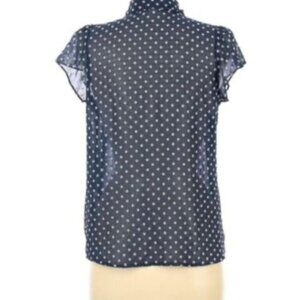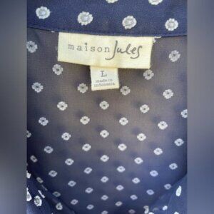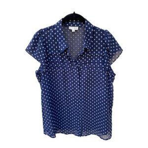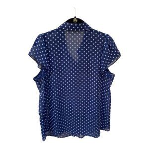 Maison Jules Women's Navy Polka Dot Flutter Sleeve Blouse Size Large