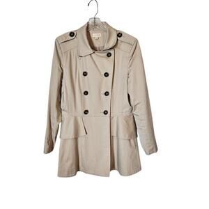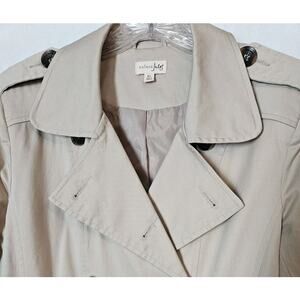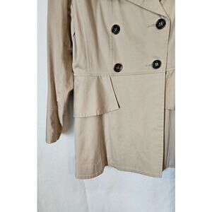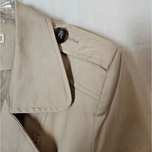 Maison Jules Women's Short Trench Coat Jacket Khaki Ruffled Back Fitted Size XL
