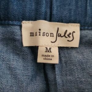 Add a touch of classic charm to your wardrobe with this Maison Jules circle skirt. Crafted from timeless chambray fabric, this size medium skirt features a button-down front for a versatile look. The circle silhouette flatters all body types and is perfect for both casual and dressed-up occasions.
