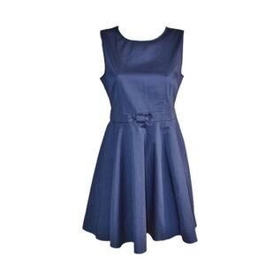 Maison Jules Womens Waist Bow Detail Fit Flare Dress Blue Office Sz 8 Sleeveless