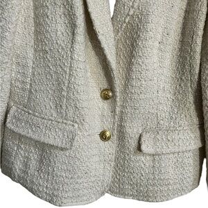 Maison Jules Womens White And Gold Boucle Blazer Gold Button Pockets Size Large
