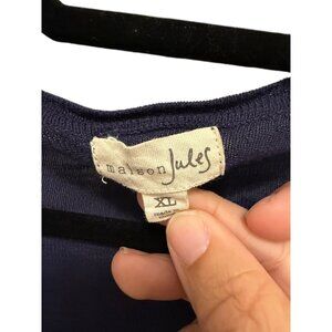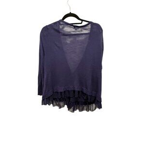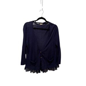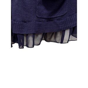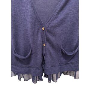 Maison Jules Womens XL Sheer Cardigan With Ruffle Hem & Pockets In Navy Blue Lig