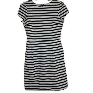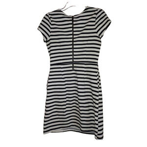 crisp black and white stripes, back zipper closure, 2 in seam pockets