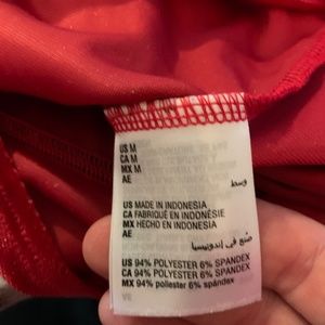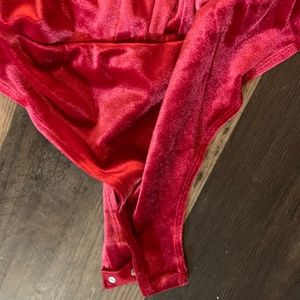 Nice red thong bodysuit by a great company. Hook closure at chest. 89 retail