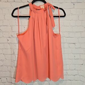New with tag no flaws. Coral color in a halter cut. Scalloped hem with attached tie at the neck