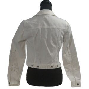 Maison Jules White Denim Jacket with Floral Sleeve Cutouts Size XS
