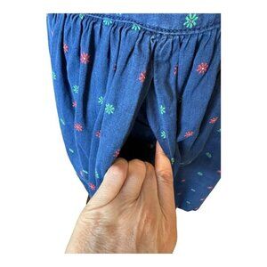Luxury designer Maison Kitsune dress in navy blue with a charming multicolor floral pattern. Made of high-quality cotton, it features a tie back and unique button detail for added style.