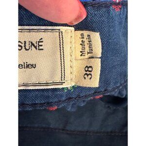 Maison Kitsune Dress Women 8 Blue Floral Cotton Button Detail Tie Back Mini
