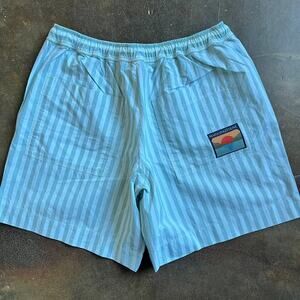 Maison Kitsune Mens Blue Striped Shorts Size L