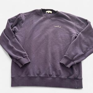 French-girl casual 🇫🇷 Maison Labiche crew neck sweatshirt in blue with small “worth it” embroidery. Lived-in feel with noticeable flaws/discoloration near collar + sleeve—perfect for effortless cool, worn-in aesthetic. Size S.