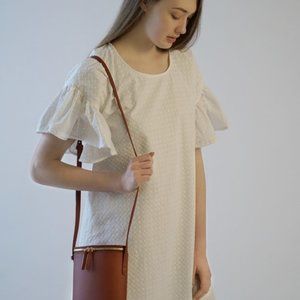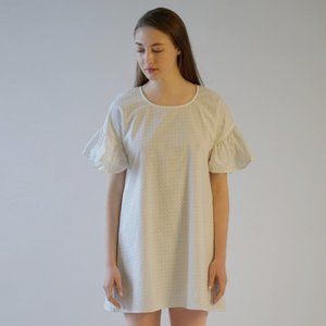 Flirty ruffled sleeve mini dress in eyelet fabric