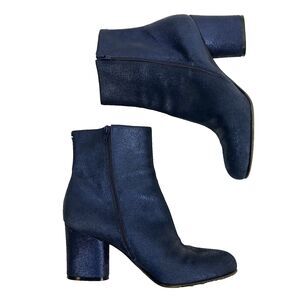 Maison Margiela Ankle Boots Size 38 Navy Blue Metallic Heels Leather Italy