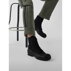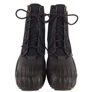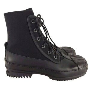 These Maison Margiela boots are crafted from leather and canvas and capped with overshoe details inspired by rain boots. They rest on rubber outsoles for added traction.