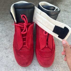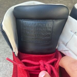 Authentic pair, made in Italy 🇮🇹 These are the iconic Margiela Futures in that rare suede black and red colorway 😶🌫️ Great condition as seen in pics 🫡 Honestly makes the whole shoe hit different. Super comfy, padded tongue and collar, nice leather build. Stamped and authenticated, no games 💯 Rock ’em, flex ’em, archive ’em. Whatever you do, they go hard. Feel free to shoot with questions or offers.