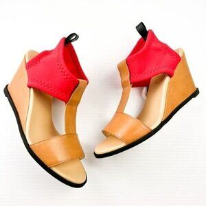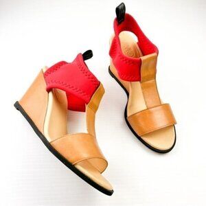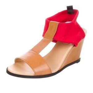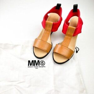 Maison Margiela MM6 Women's size 10 Tan Red Leather Wedges Sandals Shoes