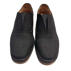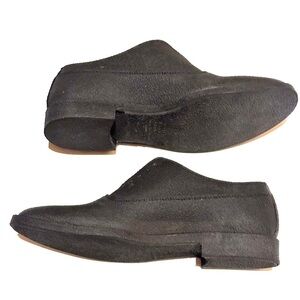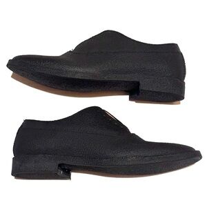 Maison Martin Margiela Recycled Rubber Coated Oxford Designer Shoes EU 37 US 6.5. Black Textured Rubber Over Leather. Signature Stitch in Back. Non-Slip. No Laces. GUC. Slight separating around toe on one shoe; see pic.