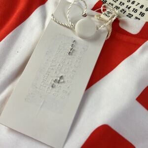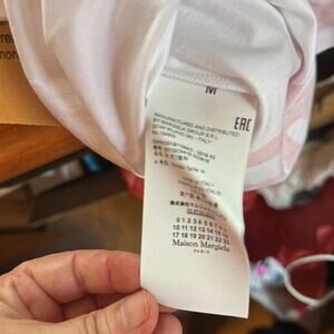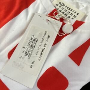Cream tee shirt from Maison Margiela. Made of cotton. Decorated with a red lettering print. short sleeves. Round neck