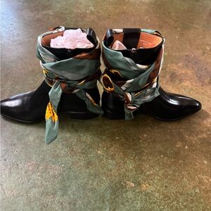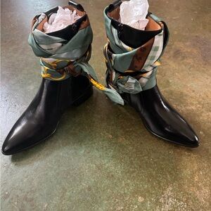Like New Pre- Loved Condition, Never Worn The Rare Elusive Maison Margiela Leather Scarf Ankle Boots, These boots are hard to find. Elegant, Bohemian and Chic all at the same time! Beautiful Custom Black Dye Job By My Professional Shoe Cobbler. Size 38. No Lowball Offers Will Be Considered , No Off Site Sales Request Or Scams Will Be Entertained . Thanks for Poshing