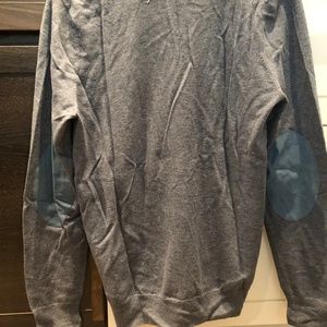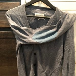 Light Blue Maison Margiela V Neck Cardigan. Cotton blend V-neck cardigan with décortiqué elbow patches. The Maison's 4 iconic stitches are exposed on the back.