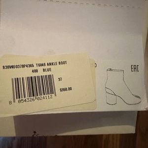Maison Martin Margiela blue ankle booties. Material blue rubber separated heel. Heel 3 inches. Comes with dustbag, box, and price tags