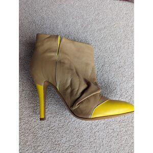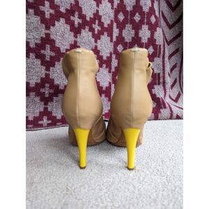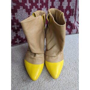 Maison Martin Margiela 22 camel leather ankle boots with yellow cap toes. 4" heel. Super luxurious and soft leather used. Slip on style. Tan/camel colored body, yellow toe and heel accents. In good used condition, a small scuff on one toe as pictured and a little wear throughout - see photos for details.