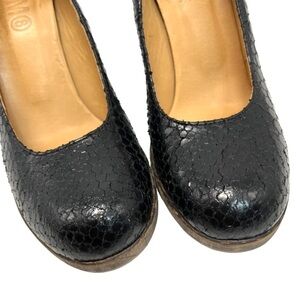 Maison Martin Margiela MM6 Black Snakeskin Leather Round Toe Block Heels Women's 38.5