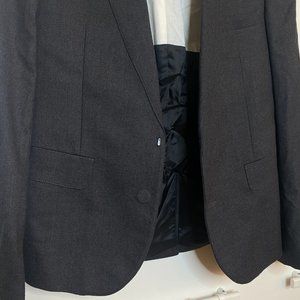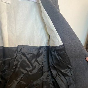 Beautiful and timeless blazer by Maison Martin Margiela in collaboration with H&M! Gorgeous silky lining, inside pockets, and slight shoulder pads. Wool in a dark grey.