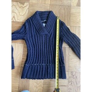 This is a very thick knit, fisherman style sweater. Officially a men's sweater, but it can certainly be unisex. The the wool is very heavyweight, and at the hems, its about 1cm thick. Truly a unique piece from this fashion collaboration.