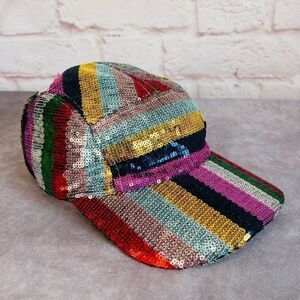 Maison Michel Paris Stripe Rainbow Colorful Nell Sequin Hat Baseball Cap M