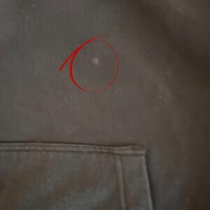 Has a random spot on front. Please see photo. Otherwise, in perfect condition.